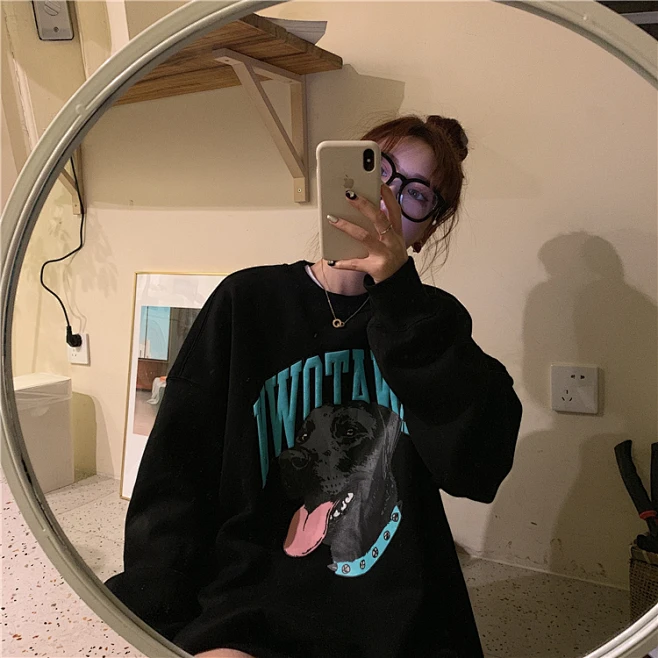 小焦梅子@韩版慵懒风字母狗头印花宽松加绒套头卫衣 2色-淘宝网-花瓣网 By